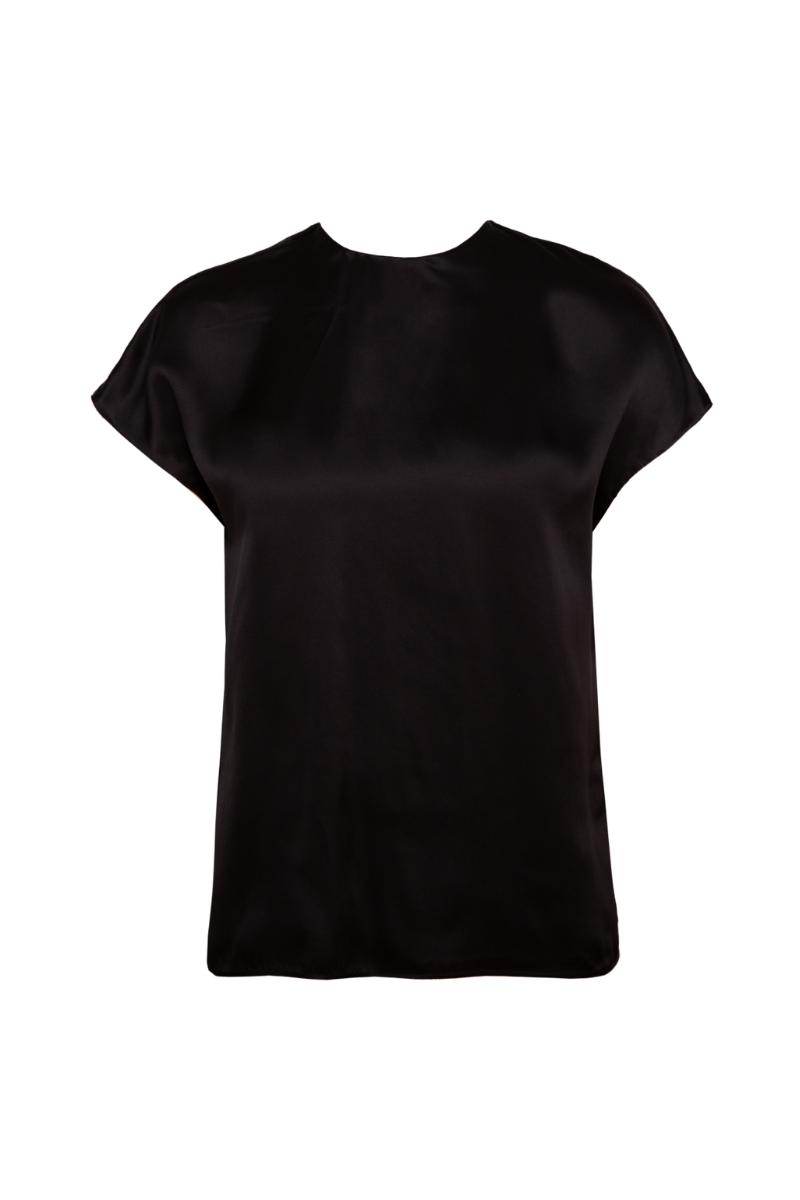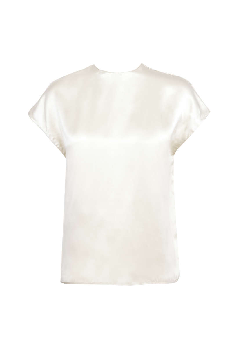 Silk t-shirt with a round neckline and a buttoned keyhole at the nape.