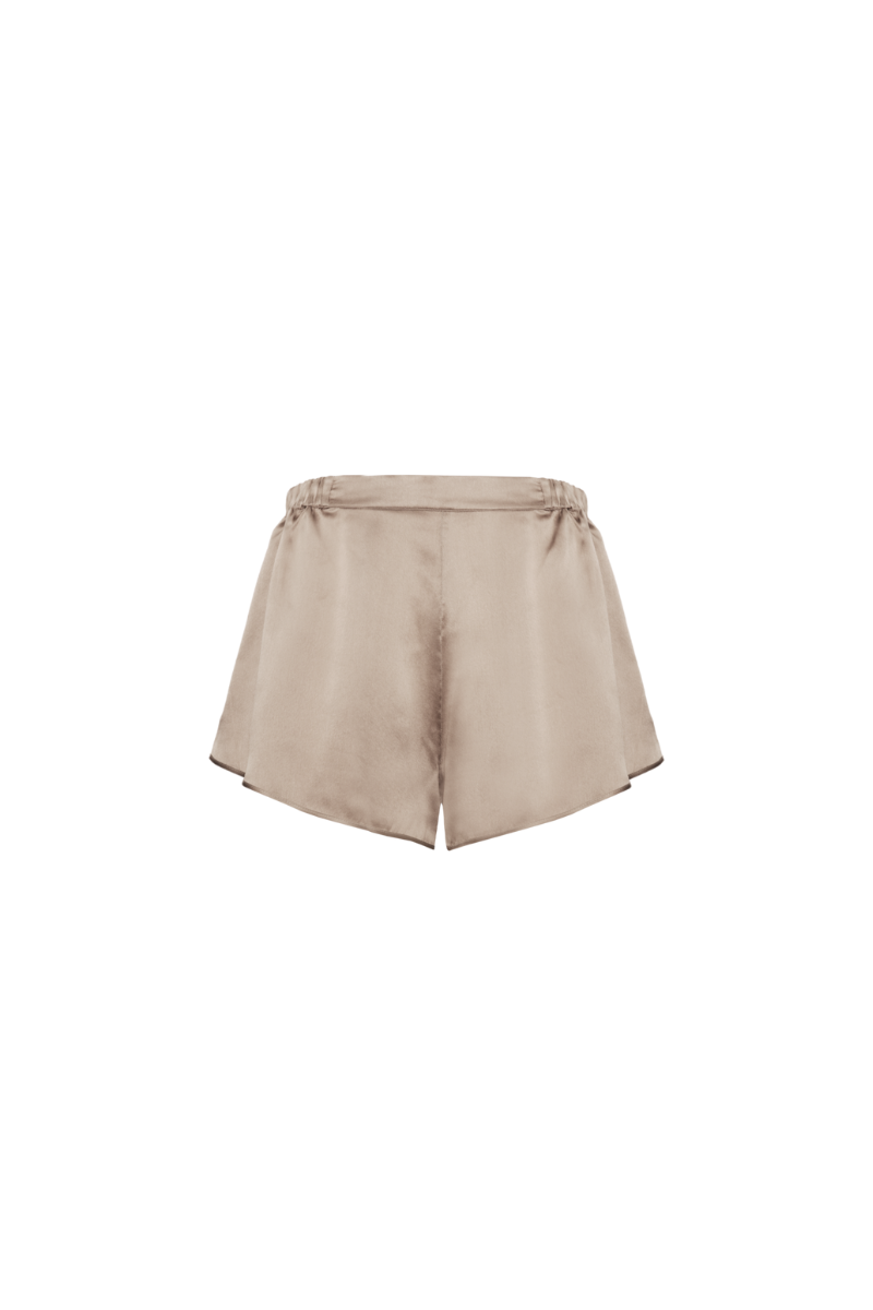 Wide-leg silk shorts with a relaxed elasticated waistband at the sides for an effortless fit.